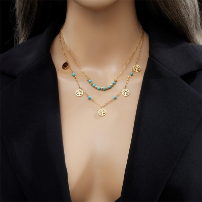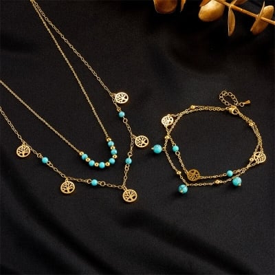 316L Stainless Steel Round Tree Green Stone Beads Necklace Anklets For Women