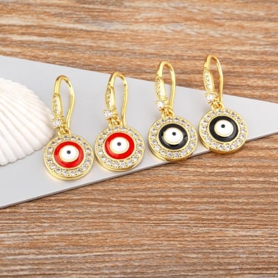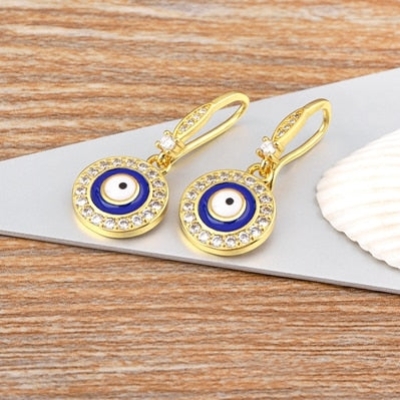 Lucky Evil Eye Hamsa Round Shape Drop Zircon Earrings