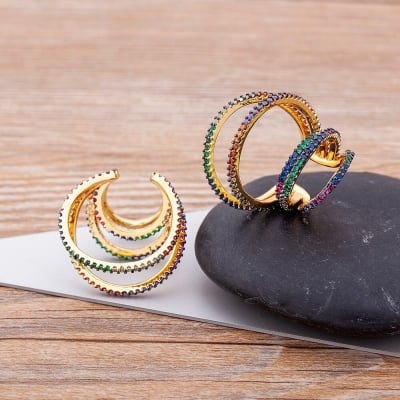 Luxury New Fashion Multi-layer Clip Earrings Colorful Color Copper Zircon Ear Cuffs For Women