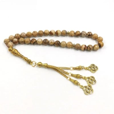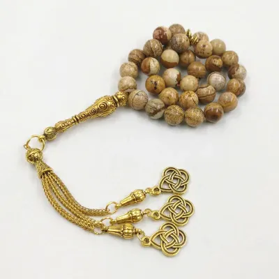 Natural Jasper Stone islamic Rosary Golden accessories 3 Chains Tassel Muslim prayer beads Gift