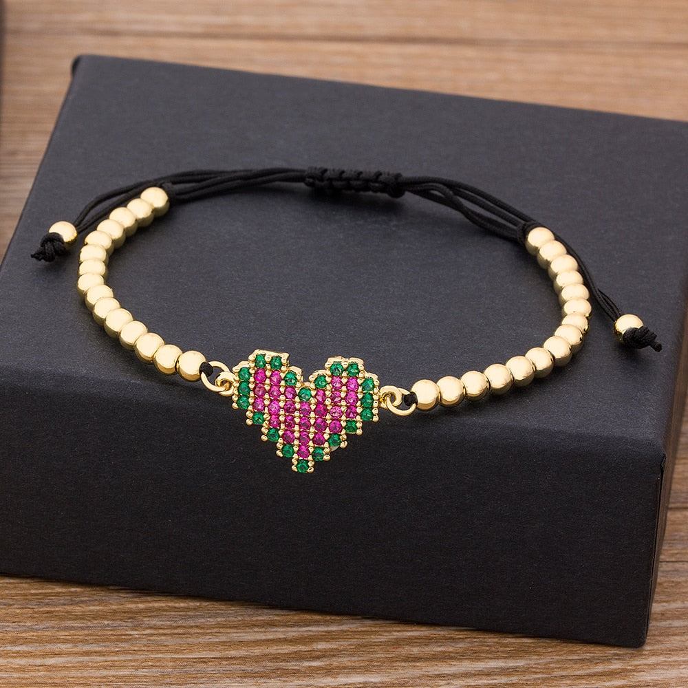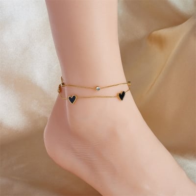 316L Stainless Steel Green Heart Zircon Anklets For Women